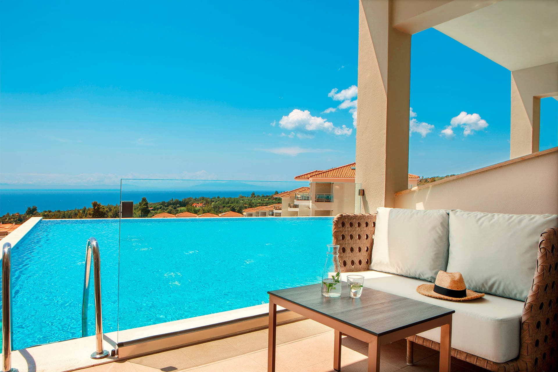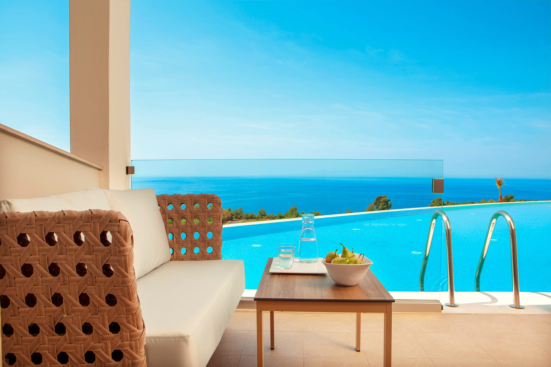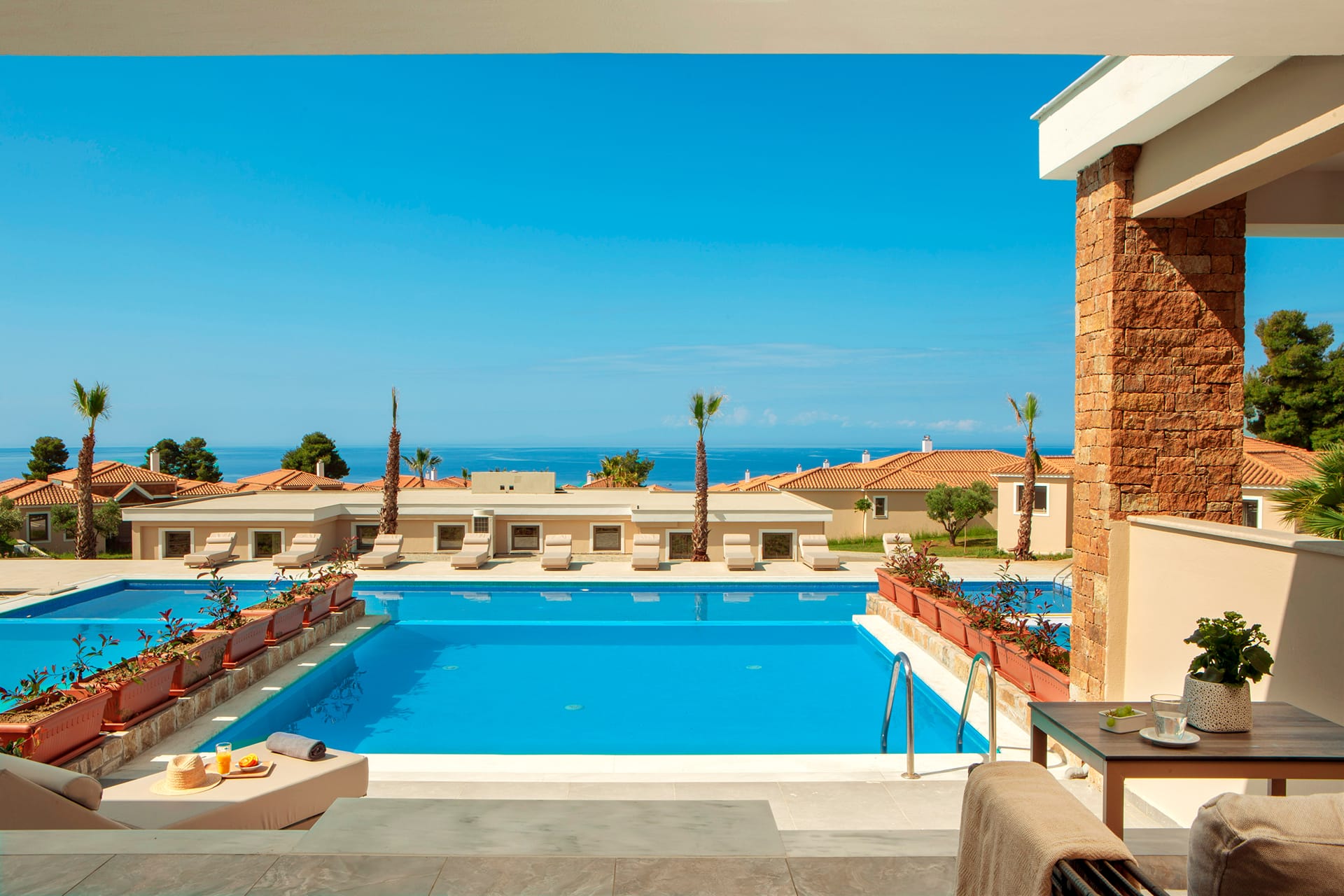 Zeus Eleva Ajul enjoys a tranquil beachfront location in Agia Paraskevi region, renowned for its unique natural environment of pine tree forests and natural springs, Zeus Eleva Ajul offers one-of-akind ultra-all-inclusive luxury hospitality services through the accommodation at one of its guestrooms, bungalows and villas.